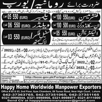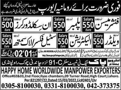 Moreover, these advertised jobs offer handsome salary packages with other facilities. Interested candidates can consult the provided job advertisement taken from newspaper. Romanian job coordinator is available in Pakistan for selection of suitable candidates.