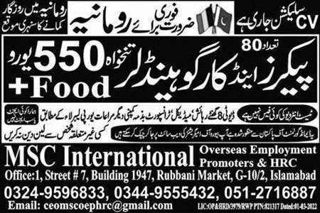 Urgent workers needed for Romania as packers and cargo handlers. Urgent workers needed for Romania and it is golden chance to earn handsome salary. Therefore, these packers and cargo handlers’ jobs will provide sound salaries with food.